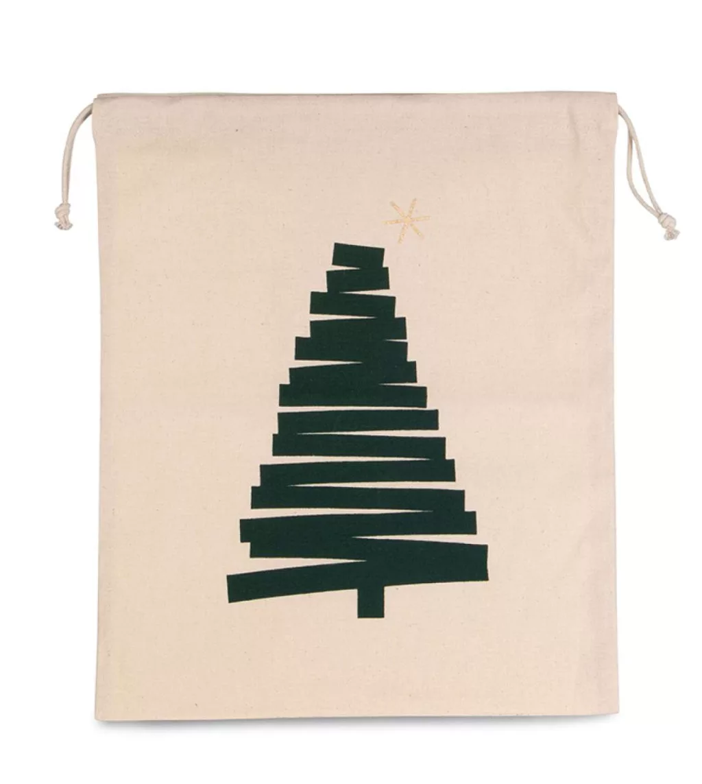 • Pamut zsák húzózsinórral, rányomtatott karácsonyfával