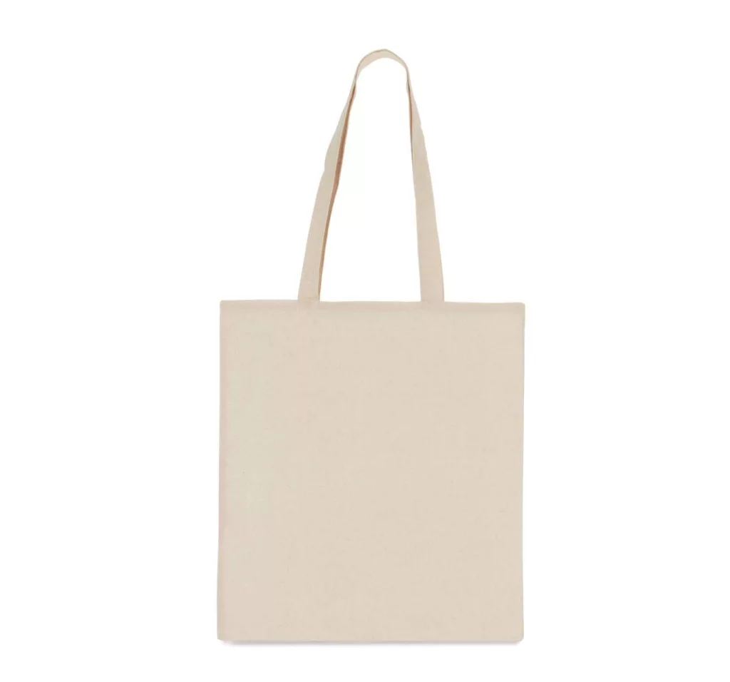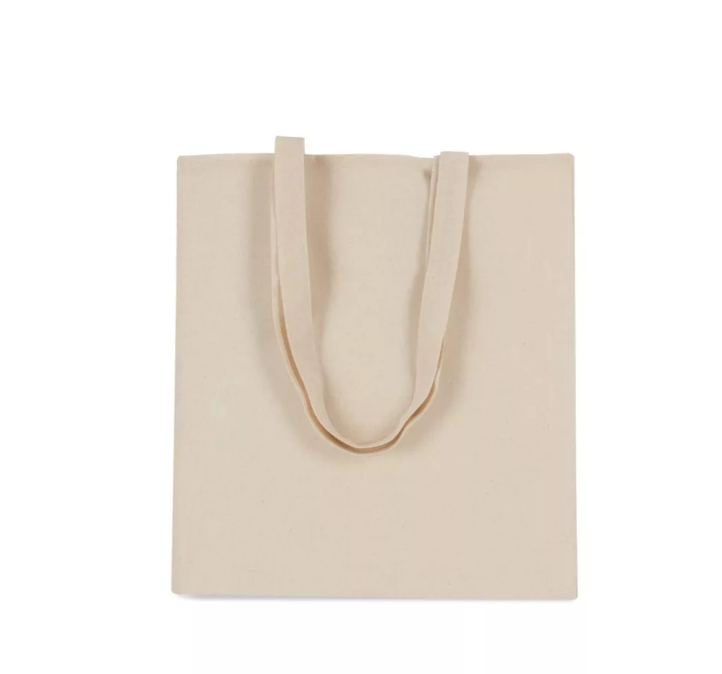 Pamut bevásárlótáska, a táska anyagából készült 70 cm hosszú fogantyúval