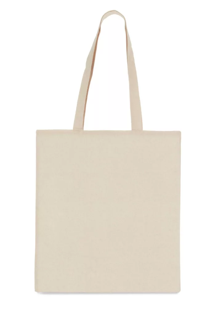 Pamut bevásárlótáska, a táska anyagából készült 70 cm hosszú fogantyúval