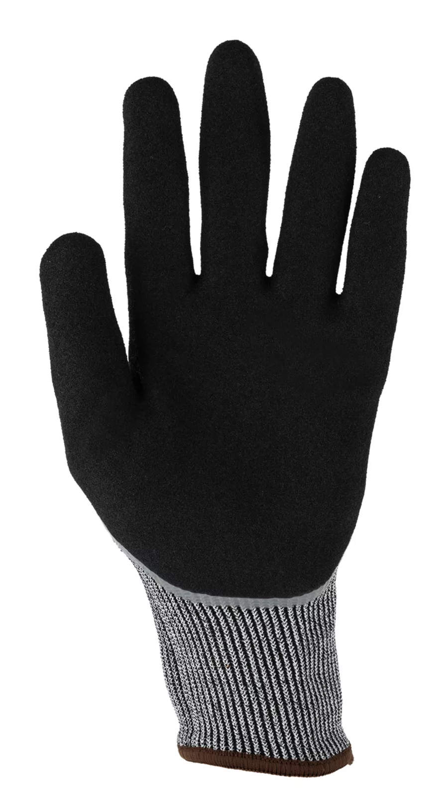 13-as kötésű, szürke, varrás nélküli alapkesztyű HPPE-ből, acélszálból, spandexből és poliészterből, Kétrétegű nitril bevonat: 1 – sima nitril ökölcsontig2 – tenyerén csúszásbiztos sandy felülettelKötött mandzsetta