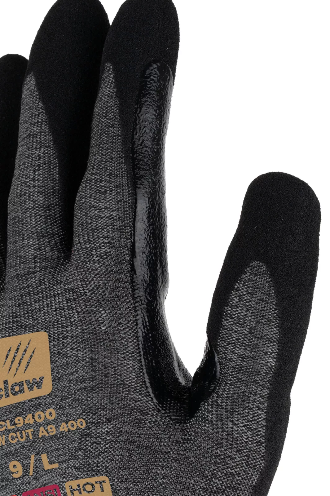 A CLAW CUT termékcsalád egy új generációs vágásálló kesztyű, amelyet azért hoztak létre, hogy megvédjen a legigényesebb munkák során, magas teljesítményszintek (CUT D-től A9-ig) vágásállósággal, és kiváló komfortot, valamint kivételes ügyességet biztosítson minden munkakörnyezetben (száraz, nedves és olajos).A CLAW CUT A9 400 valódi forradalom a vágások elleni védelem terén, a világ legmagasabb vágásállósági szintjével (CUT A9, az AINSI szabvány szerint). Ez a kesztyű finom anyagmozgatási munkákhoz készült száraz és enyhén olajos környezetben. A magas 18-as kötés, párosítva egy rendkívül puha és erős üvegszál, poliészter, acél és spandex alapú szálból készült anyaggal, kivételes komfortot nyújt, miközben rendkívüli teljesítményt biztosít.A sandy nitril bevonat és a hosszú megerősítés a hüvelykujj és a mutatóujj között kiváló tapadást és jó fogást biztosít. Ez a bevonat nagyon jó légáteresztőséget garantál (COVERPERF címke alatt tesztelve).A CLAW CUT A9 400 újrahasznosított poliészterből készült, és RCS tanúsítvánnyal rendelkezik (a termék teljes súlyának 16%-a). Üvegszál nélkül.Ez a kesztyű érintőképernyő kompatibilis, így viselése közben is használhatja a képernyős eszközöket. Sanitized kezelés: megakadályozza a baktériumok és szagok fejlődését,