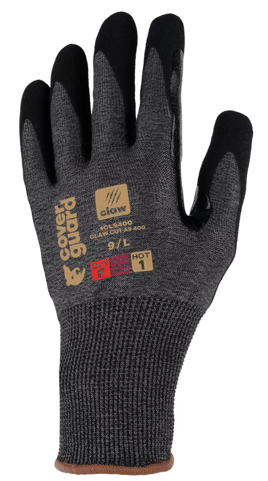 A CLAW CUT termékcsalád egy új generációs vágásálló kesztyű, amelyet azért hoztak létre, hogy megvédjen a legigényesebb munkák során, magas teljesítményszintek (CUT D-től A9-ig) vágásállósággal, és kiváló komfortot, valamint kivételes ügyességet biztosítson minden munkakörnyezetben (száraz, nedves és olajos).A CLAW CUT A9 400 valódi forradalom a vágások elleni védelem terén, a világ legmagasabb vágásállósági szintjével (CUT A9, az AINSI szabvány szerint). Ez a kesztyű finom anyagmozgatási munkákhoz készült száraz és enyhén olajos környezetben. A magas 18-as kötés, párosítva egy rendkívül puha és erős üvegszál, poliészter, acél és spandex alapú szálból készült anyaggal, kivételes komfortot nyújt, miközben rendkívüli teljesítményt biztosít.A sandy nitril bevonat és a hosszú megerősítés a hüvelykujj és a mutatóujj között kiváló tapadást és jó fogást biztosít. Ez a bevonat nagyon jó légáteresztőséget garantál (COVERPERF címke alatt tesztelve).A CLAW CUT A9 400 újrahasznosított poliészterből készült, és RCS tanúsítvánnyal rendelkezik (a termék teljes súlyának 16%-a). Üvegszál nélkül.Ez a kesztyű érintőképernyő kompatibilis, így viselése közben is használhatja a képernyős eszközöket. Sanitized kezelés: megakadályozza a baktériumok és szagok fejlődését,