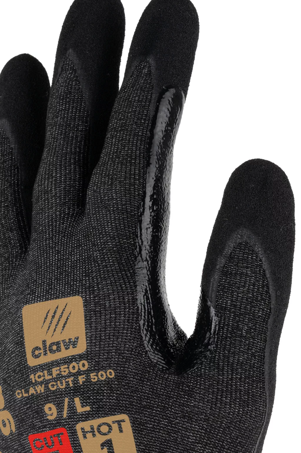 A CLAW CUT termékcsalád egy új generációs vágásálló kesztyű, amelyet a legigényesebb munkákhoz terveztek, magas vágásállósági szinttel (CUT D-től A9-ig), és kiváló kényelmet, valamint kivételes ügyességet biztosít minden munkakörnyezetben (száraz, nedves és olajos).A CLAW CUT F 500 modell finom anyagmozgatásra lett kifejlesztve száraz és olajos környezetben. A magas 21-es kötés, amely egy rendkívül puha és erős üvegszál, poliészter, acél és spandex alapú anyagból készült, második bőr érzést nyújt, miközben maximális vágásvédelmet biztosít (CUT F, az EN388 szabvány szerint).A nitril dupla rétegű tenyérbevonat szemcsézett felülettel vízálló, és a hosszú megerősítés a hüvelykujj és a mutatóujj között kiváló tapadást és jó fogást biztosít a legigényesebb munkák során száraz és olajos környezetben.A CLAW CUT F 500 újrahasznosított poliészterből készült, és RCS tanúsítvánnyal rendelkezik (a termék összsúlyának 16%-a). Üvegszál nélkül.Ez a kesztyű érintőképernyő kompatibilis, így viselése közben is használhatja a képernyős berendezéseket. Sanitized kezelés: megakadályozza a baktériumok és szagok fejlődését, és a CLAW CUT F 500 hypoallergén is (COVERPERF SKINCARE teszt).