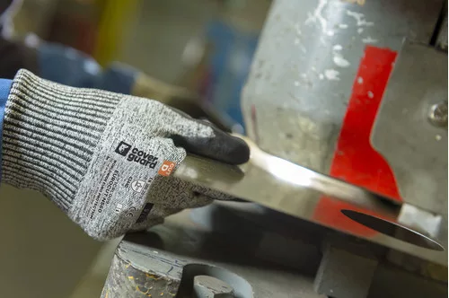 Szürke HHPE-vel, ásványi szálakkal, poliamiddal és elasztánnal erősített 13-mas kötésű védőkesztyű.A tenyerén fekete nitril habbal megerősítve.Kötött mandzsetta