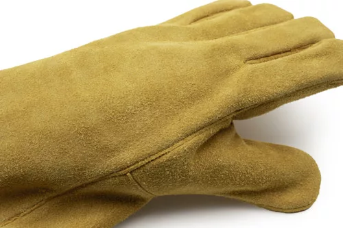 Arany színű marhahasíték hegesztő védőkesztyű Kevlar® cérnával Vastag hőszigetelő polár béléssel5 cm hosszú, hasított bőr biztonsági mandzsetta