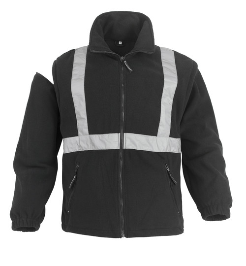 * PVC-vel vízhatlanított poliészter külső, selymes taft belső * 4 az 1-ben modell: kicipzározható, 280 g/m2-es, levehető ujjakkal mellénnyé alakítható polár pulóver belső, fényvisszaverő csíkokkal * kétutas cipzár patentos fedővel, rejtett kapucni, polárbetétes gallér * 5 cm széles fényvisszaverő csíkokkal