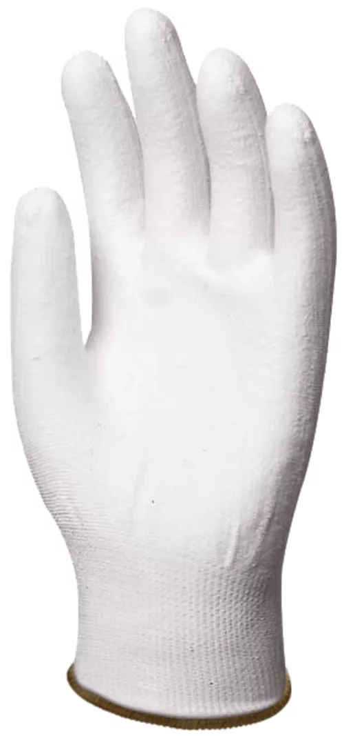 Fehér HDPA-val és elasztánnal megerősített kesztű, 13-mas kötésű, fehér poliuretán tenyér mártással, fonott csuklórésszel