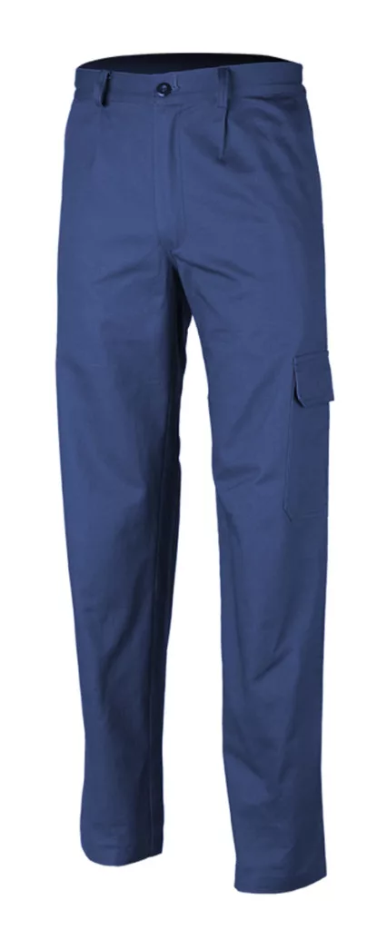 * 245 g/m2 kopásálló, lánckötésű anyag, 35% pamut, 65% poliészter, egyenes fazonú, kényelmes, nagy szakítószilárdságú, testbarát anyagból készült deréknadrág* széles, erős övbújtatók, cipzáras slicc, gombbal záródó derék hátul gumírozott betéttel* két oldal-, egy tépőzáras rátétes-, egy szerszám és egy farzseb* biztonsági tripla varrás végig a szár mindkét oldalán